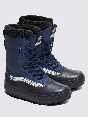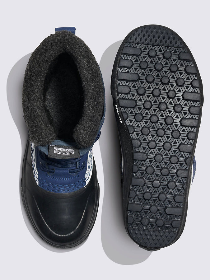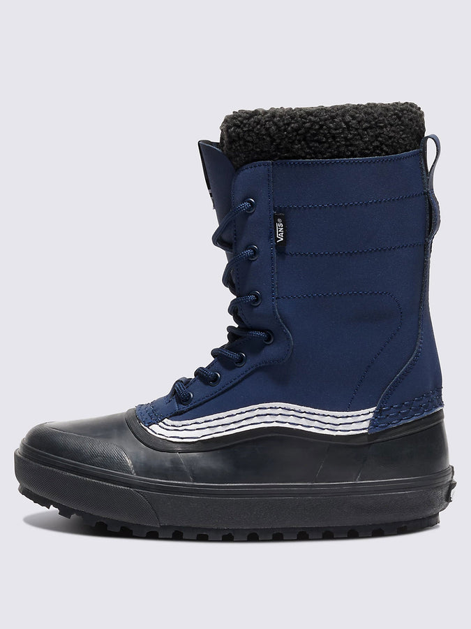 The Standard Waterproof Boot is the modern standard in winter boots—waterproofing, warmth, and traction wrapped in Vans style. Complete with a waterproof vulcanized look, heavy-duty felt liner, and Standard Snow MTE outsole featuring All-Trac all-terrain rubber, this Sidestripe snow boot is a contemporary cold weather classic in the Vans family, and the obvious choice for all your winter needs. It is made with leather and rubber uppers.