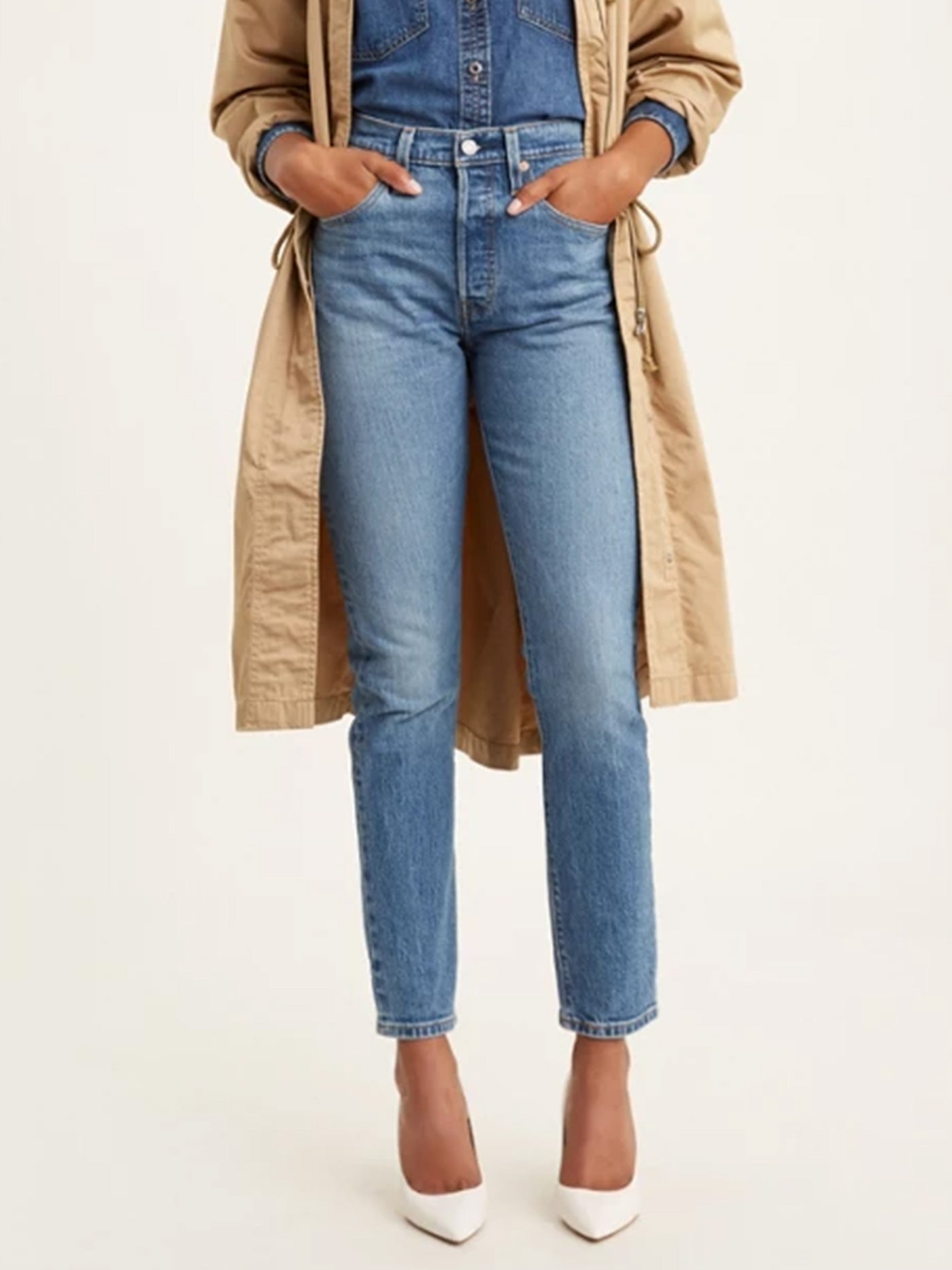 The evolution of an icon, The 501® Original is customized with a sleek skinny leg, Iconic leather patch at back waist, Destructed finish.