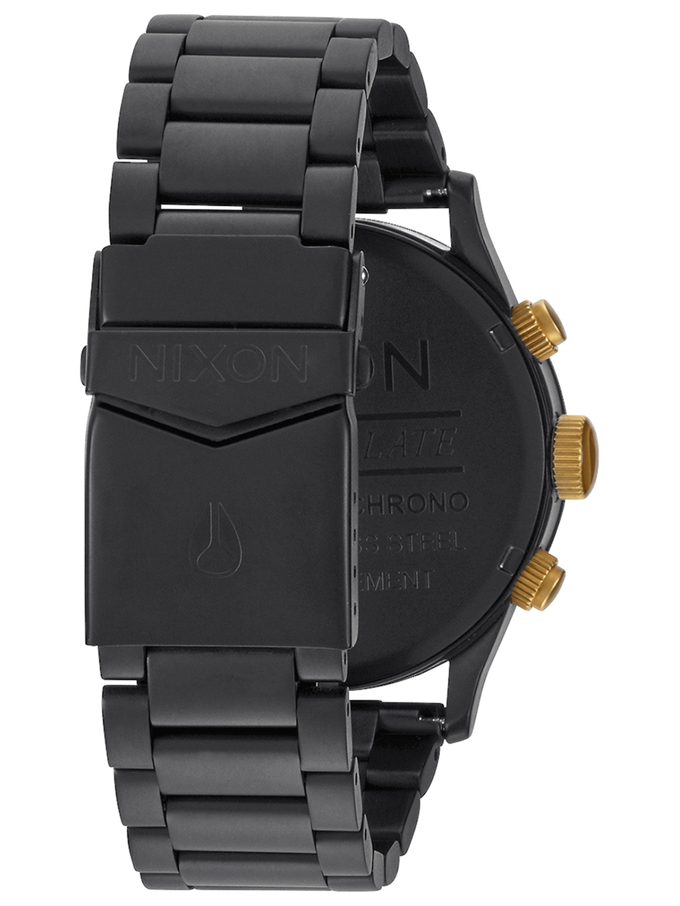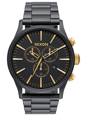 A timeless 42 mm design with the modern Nixon twist of faceted applied hour indices