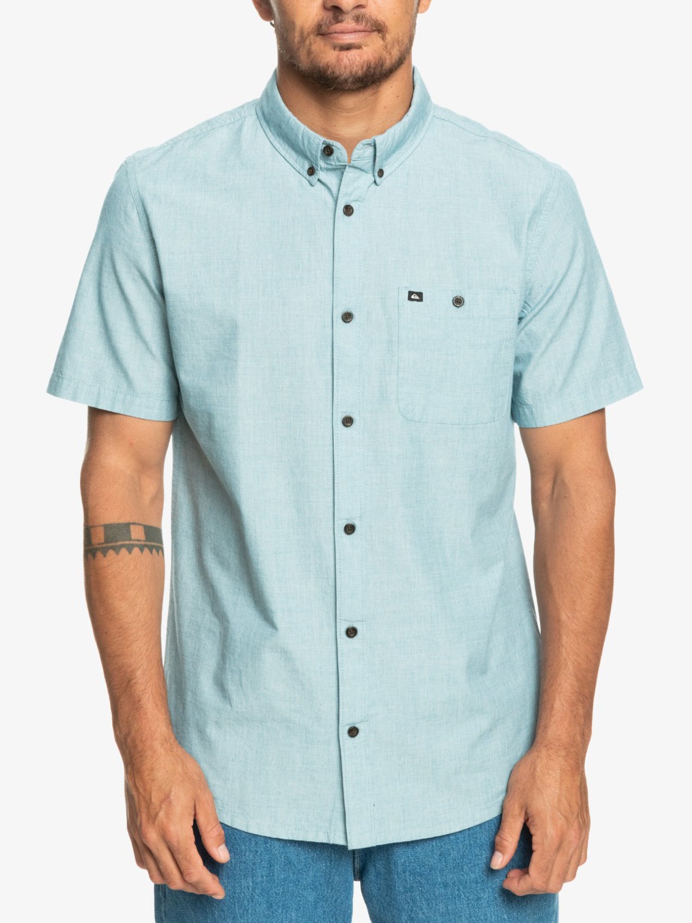 Made of textured cotton chambray fabric with a soft-to-touch feel, this short-sleeve shirt elevates your button-up collection. The classic fit is styled with a chest pocket and a curved hem.