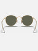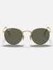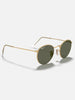 The Ray-Ban ® Round Metal sunglasses are totally retro. This look has been worn by legendary musicians and inspired by the 1960s counter-culture when this style first originated.The Ray-Ban unisex metal, iconic Sunglasses are known for their defined round crystal lenses and distinct shape. A curved brow bar, adjustable nose pads, and thin metal temples with plastic end tips rest comfortably behind the ears. Available with Legend Gold lens logo, straight from the archive.