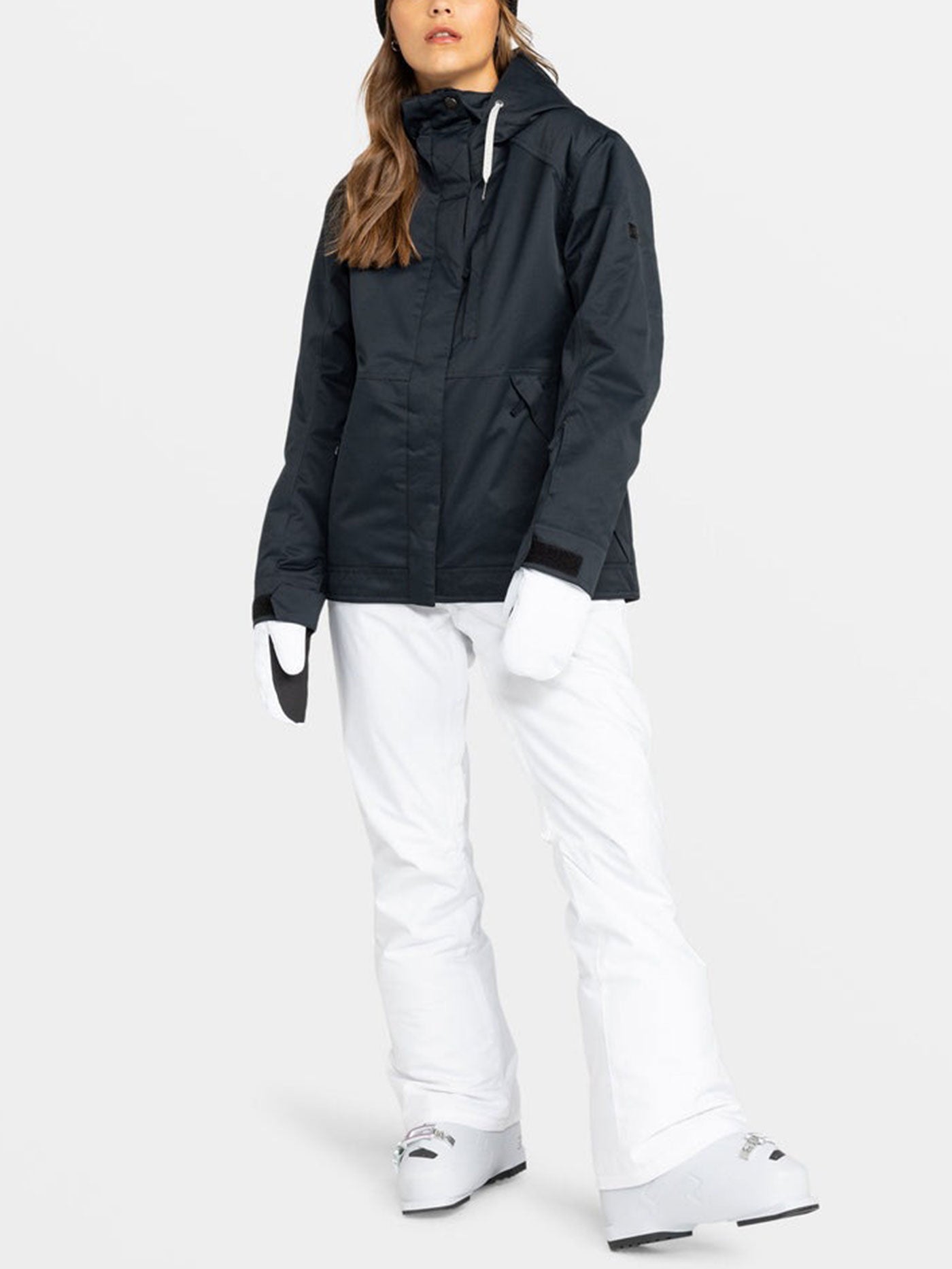ROXY's Billie Snow Jacket is a tailored, high-performance winter essential. Crafted from a durable polyester blend, it's waterproof, breathable, and insulated to keep you cozy and dry on the slopes. With a 3-way adjustable hood, functional pockets, and a powder skirt, it's the perfect blend of style and function for all your snow adventures. Featured here in the True Black colorway.