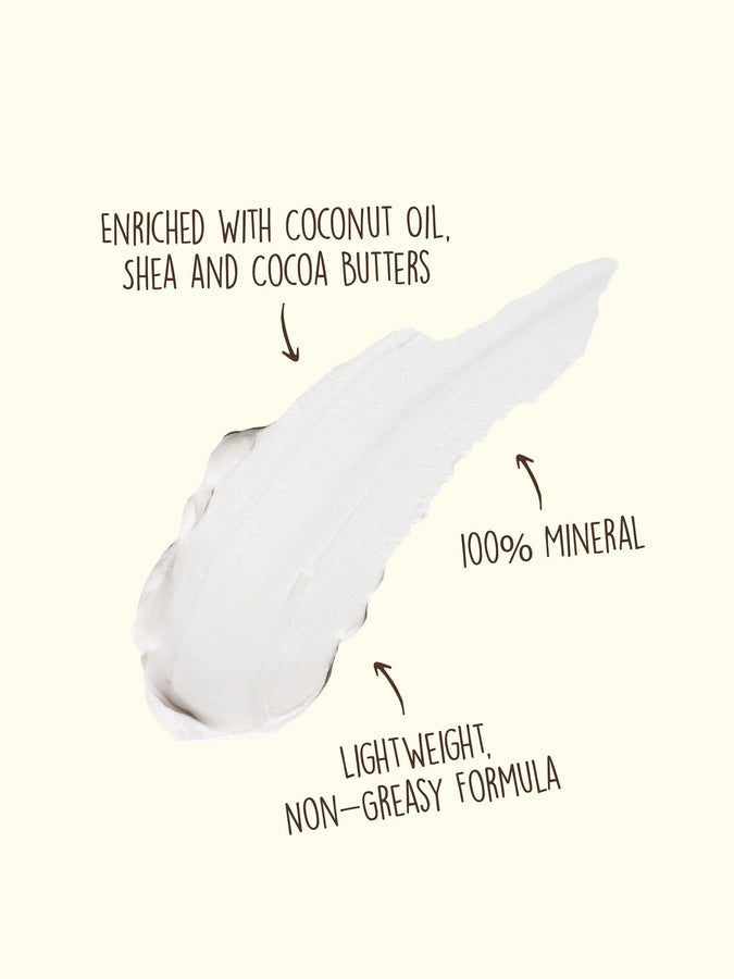 Our 100% mineral based sunscreen gives broad spectrum protection with a lightweight, non-greasy formula that's easy to blend in.