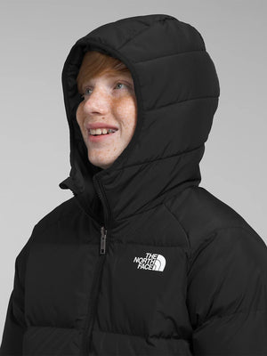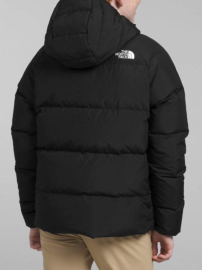 Updated with a warm 600-fill recycled down insulation, the Boys’ Reversible North Down Hooded Jacket will be his go-to for icy days. A reversible design lets him change his style at a moment’s notice.