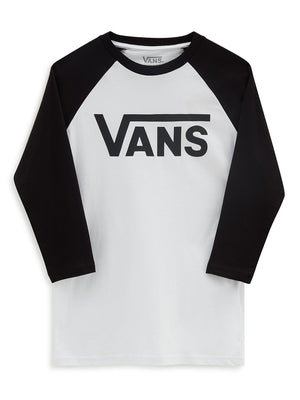 With contrasting sleeves and neckline, the Kids Vans Classic Raglan T-Shirt features a crew neck, three-quarter length sleeves and signature Vans branding on the front.